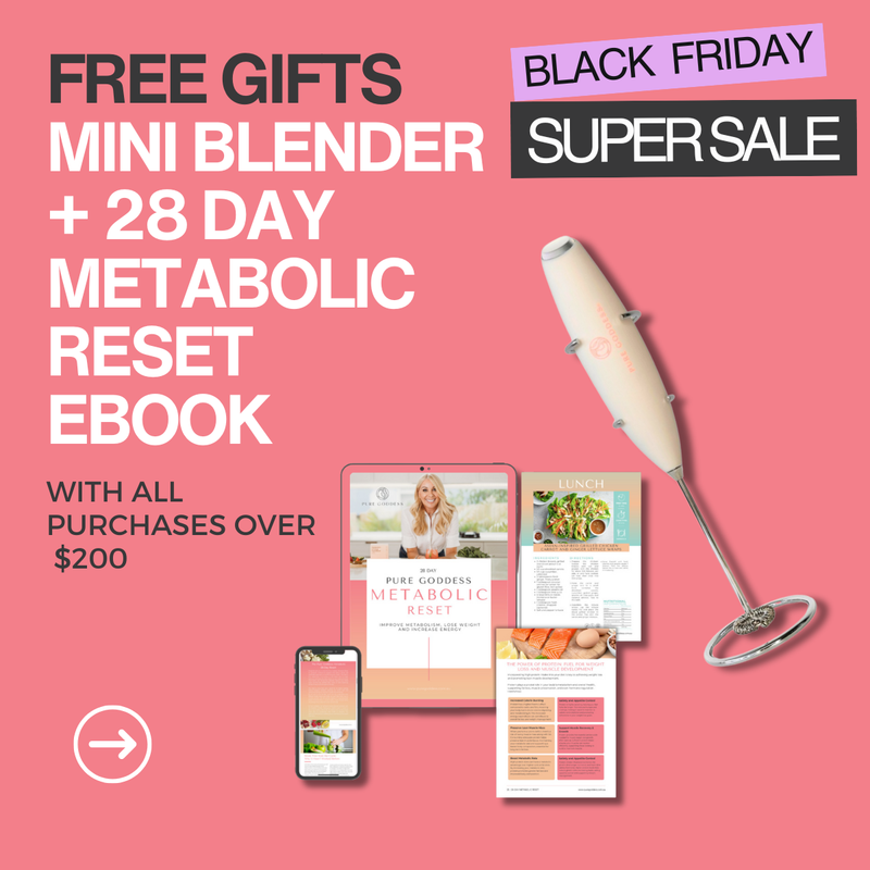 Get the 28 Day Metabolic Reset Ebook plus a mini handheld blender total value $54.99 with orders over $200 - automatically adds to cart.